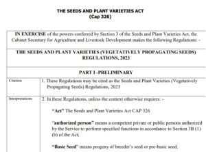The Seeds and Plant Varieties (Vegetatively Propagating Seed) Regulations 2024, enacted by the Ministry of Agriculture, aim to enhance the quality and accessibility of vegetatively propagating seeds (VPS) within the nation’s seed industry. These regulations categorize VPS into groups such as root and tuber crops (potato is to be classified), oil and nut crops, sugar crops, medicinal herbs, spices, and aromatic plants, beverage crops, fruit trees, grasses, and pasture legumes. ​Key provisions;