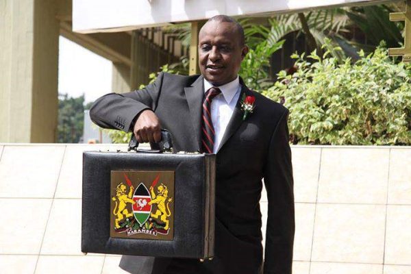 Treasury Cabinet Secretary Henry Rotich with the Budget briefcase at the National Treasury on his way to Parliament to present the 2019/2020 Budget on June 13, 2019 The…